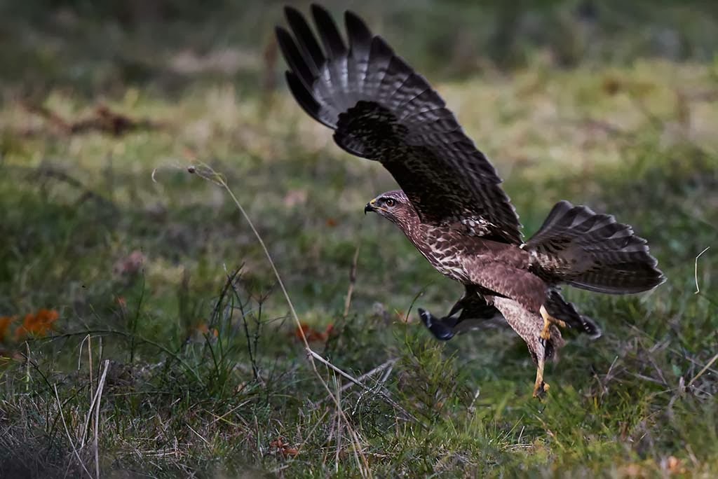 Här har den just upptäckt mig. Vingarna fälls ut, den tar med benen sats mot marken. Frustrationen lyser ur rovfågelsögat.